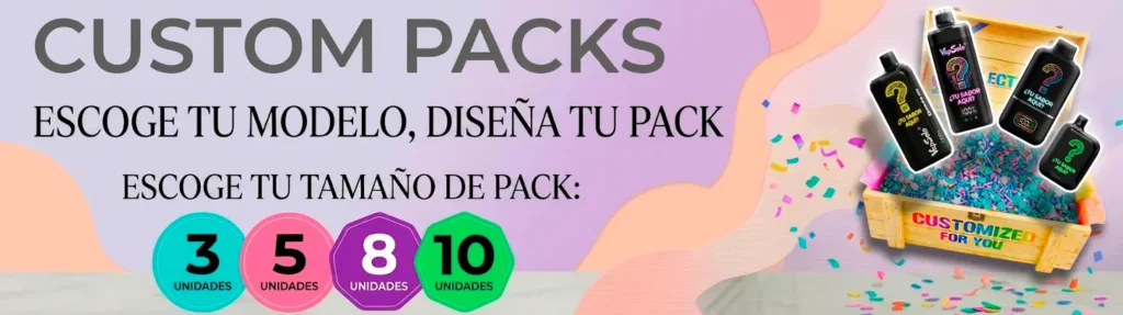 - IPacks de 3, 5 ,8 y 10: En estos formatos eliges un solo modelo, pero puedes personalizar y mezclar los sabores de ese modelo como quieras.